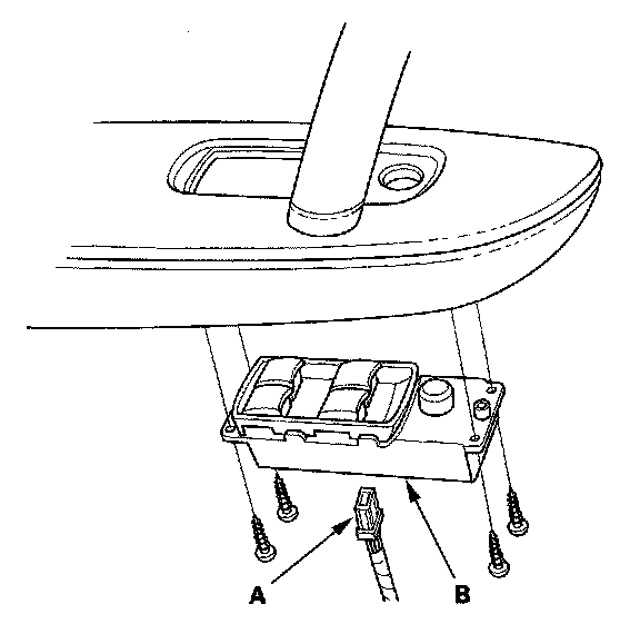 2. Disconnect the 6P connector (A) from the power window master switch (B).