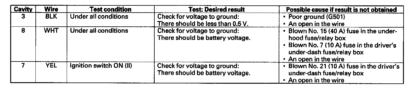 6. With the connector still disconnected, make these input tests at the connector.