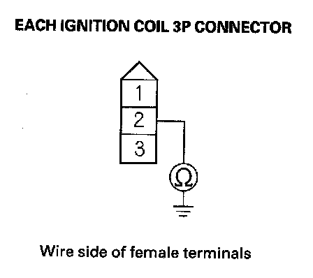 5. Check for continuity between each ignition coil 3P connector terminal No. 2 and the body ground.