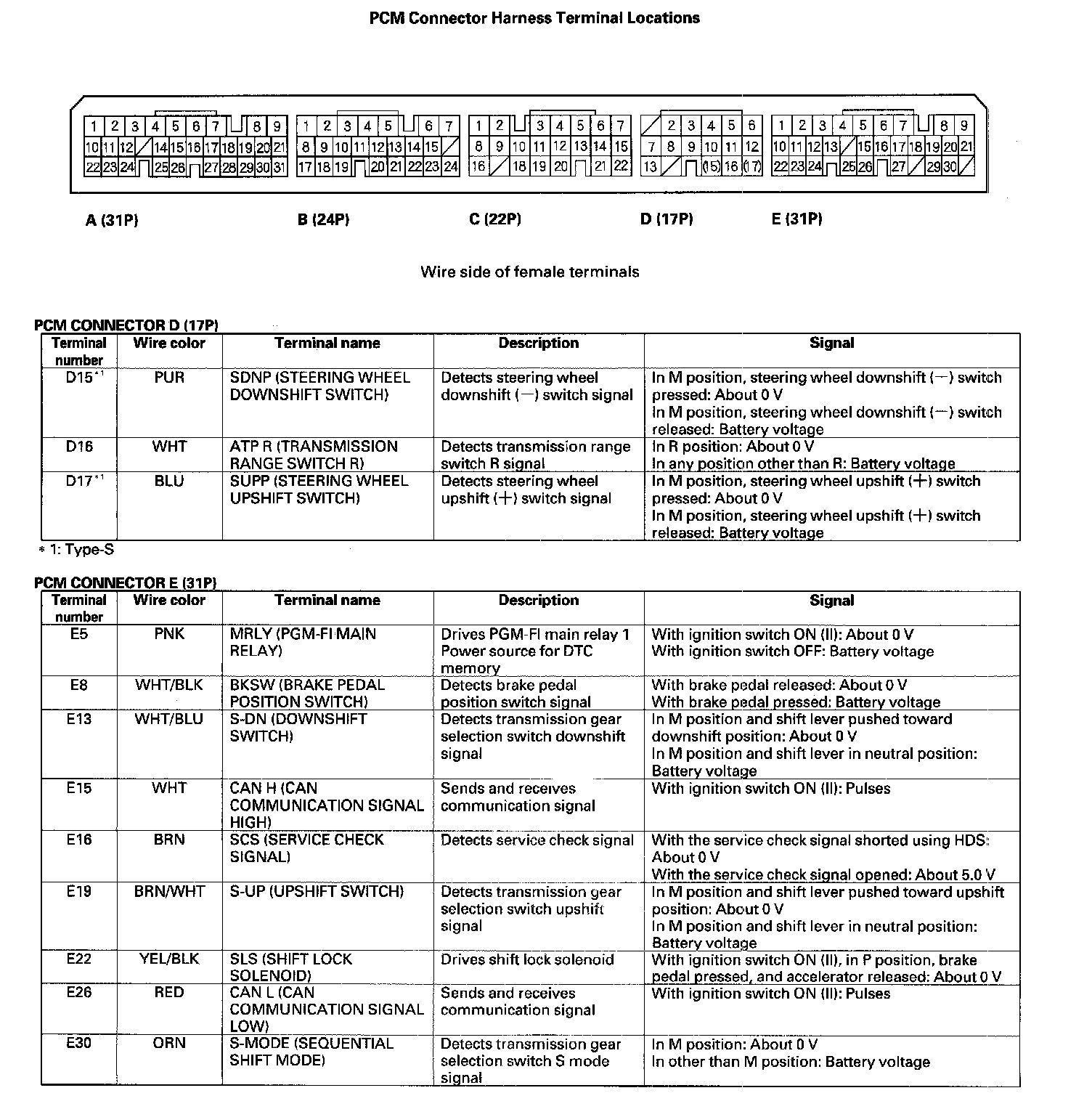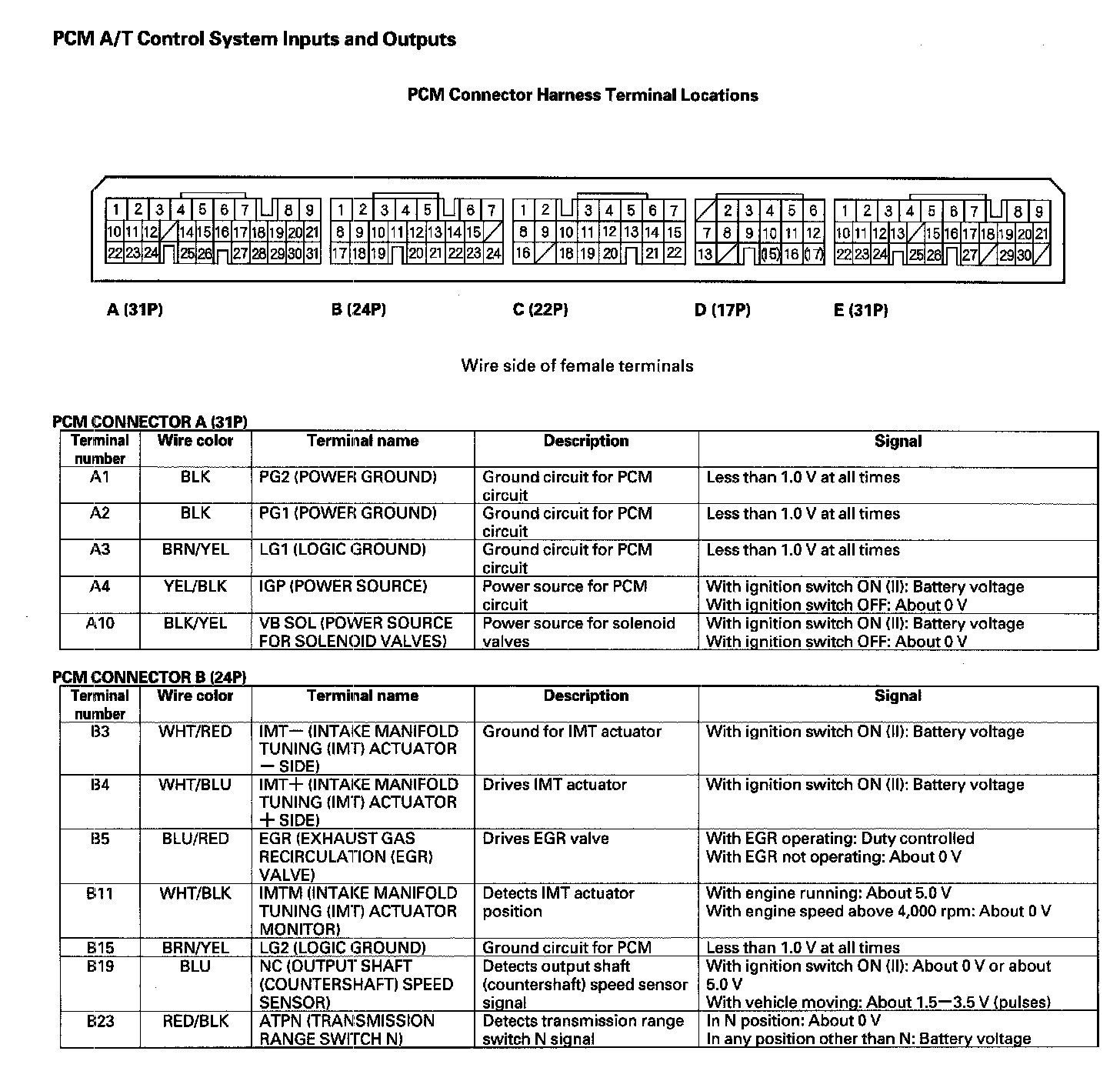 PCM A/T Control System Inputs and Outputs (Part 1):