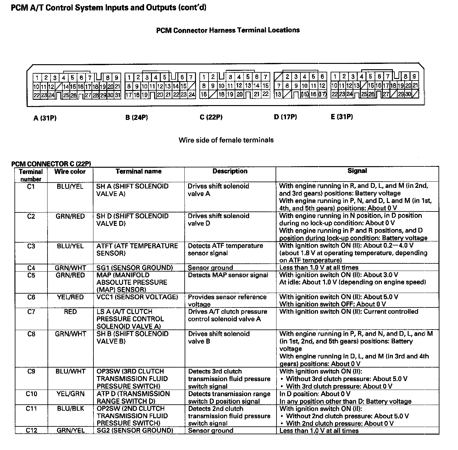 PCM A/T Control System Inputs and Outputs (Part 4):
