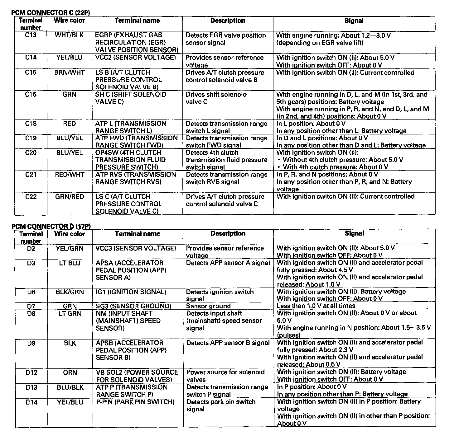 PCM A/T Control System Inputs and Outputs (Part 3):