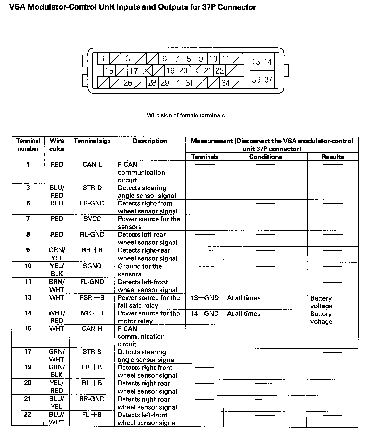 VSA Modulator-Control Unit Inputs and Outputs for 37P Connector (Part 1):
