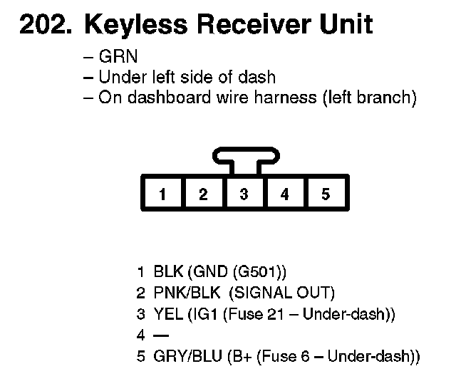 202. Keyless Receiver Unit:
