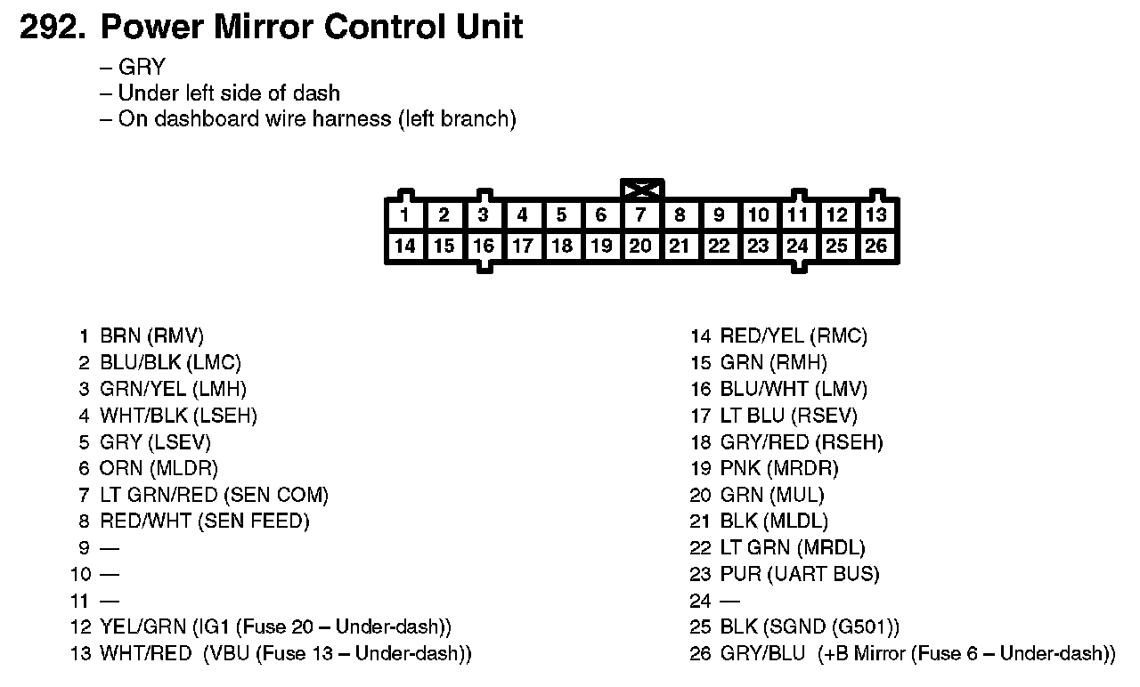 292. Power Mirror Control Unit: