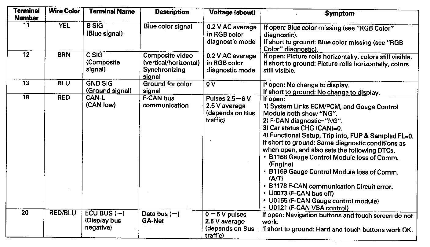 Navigation Unit Inputs And Outputs For Connector A (20P) Part 2: