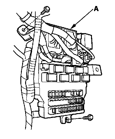 4. Disconnect the connectors from the fuse side of the under-dash fuse/relay box (A).