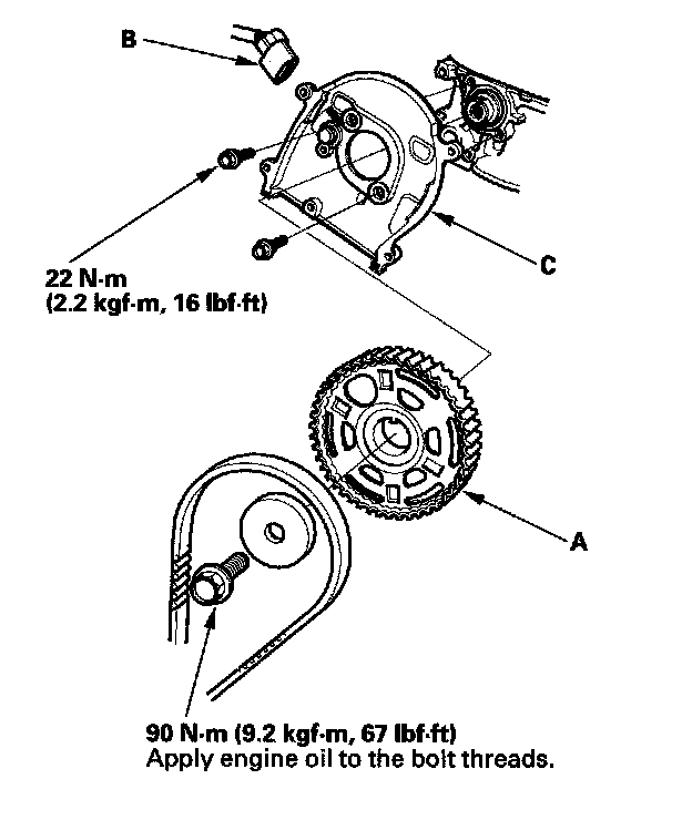 7. Disconnect the CMP sensor 3P connector (B), then remove the back cover (C).