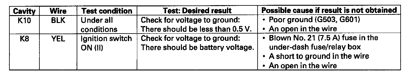 2. Disconnect the under-hood fuse/relay box connector K (10P).