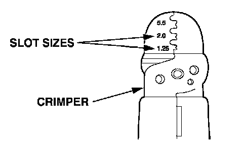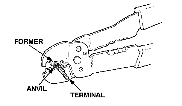 4. Position the terminal in the crimping tool slot with the solid portion of the terminal toward the anvil and the open section toward the former.