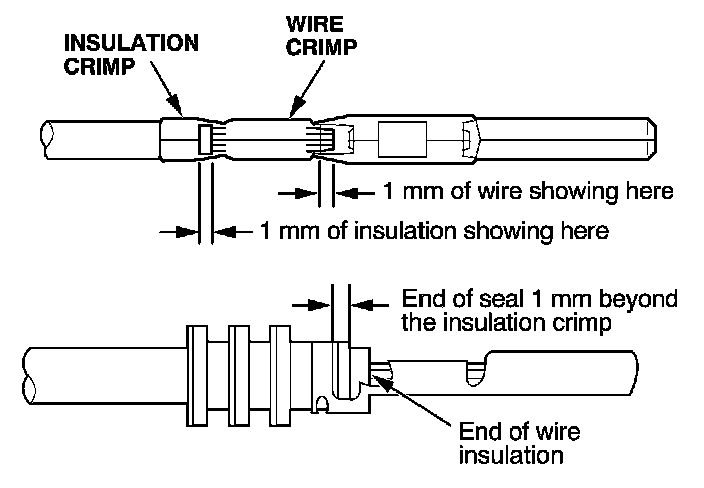 - If you do not have a wire seal, then use the next larger size crimp slot. Position the crimping tool over the insulation crimp section of the terminal, then squeeze the tool with both hands until the stops make contact.