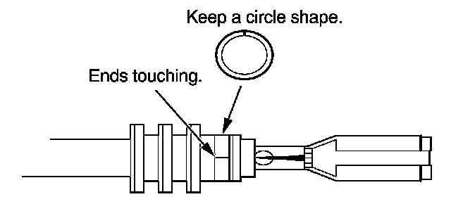 3. Strip the insulation off the end of the wire so the wire fits in the new terminal as shown. (If the wire has a wire seal, replace it with a new one from the kit.)