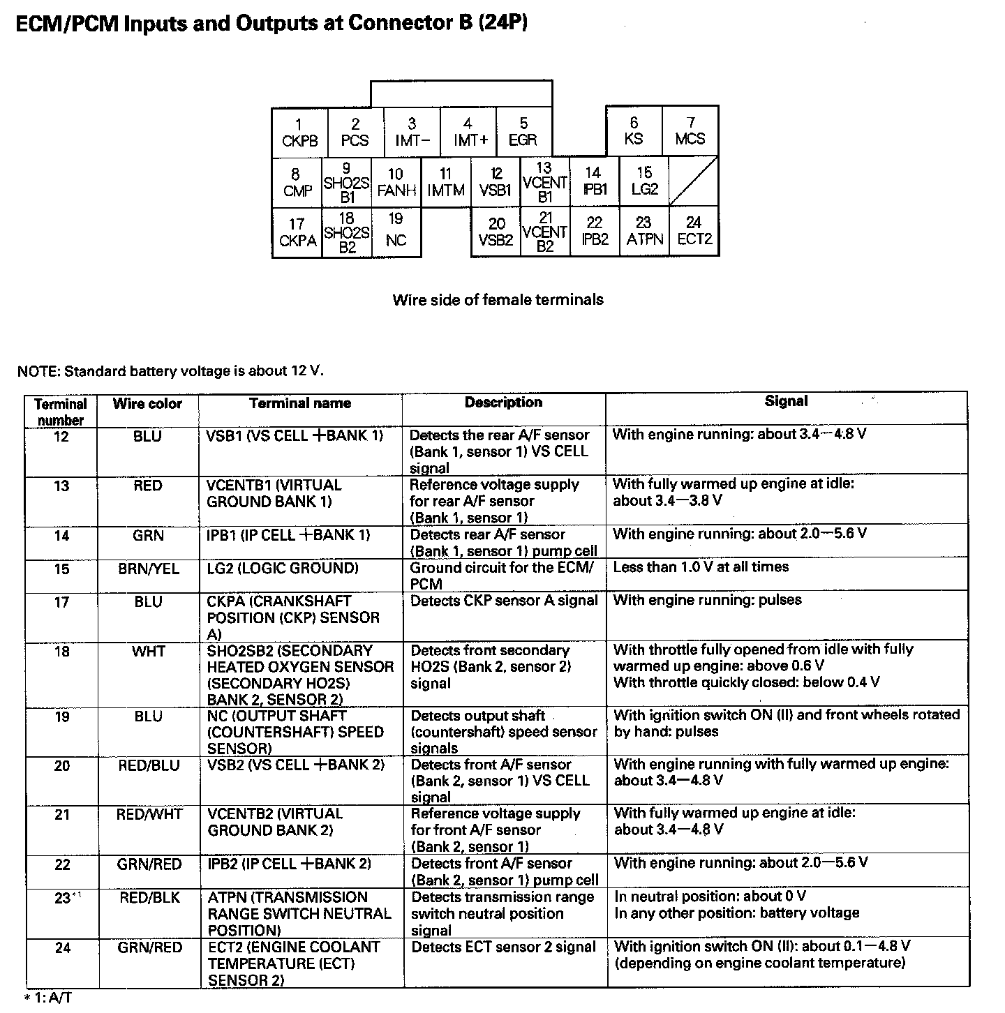 ECM/PCM Inputs And Outputs At Connector B (24P) Part 1: