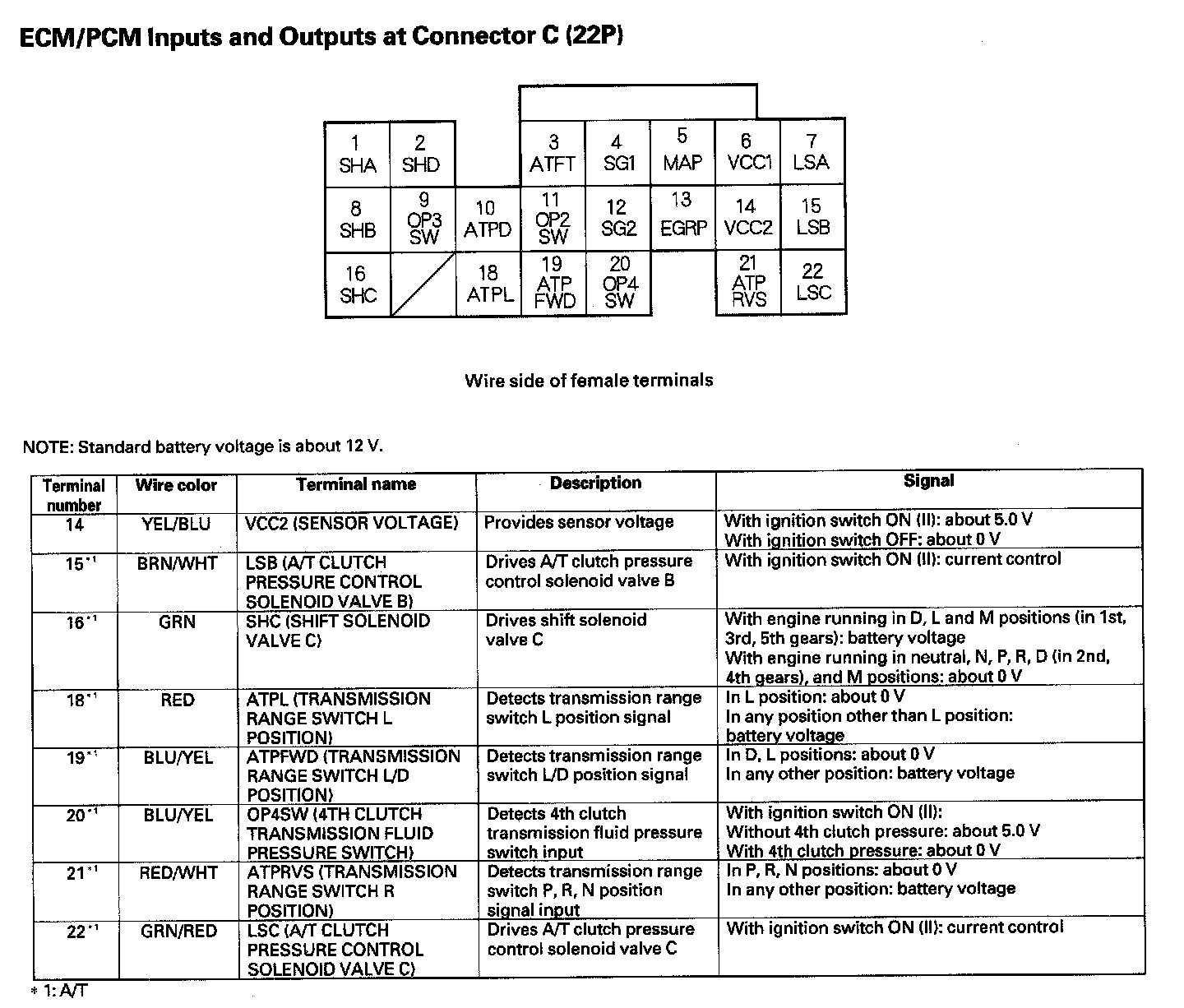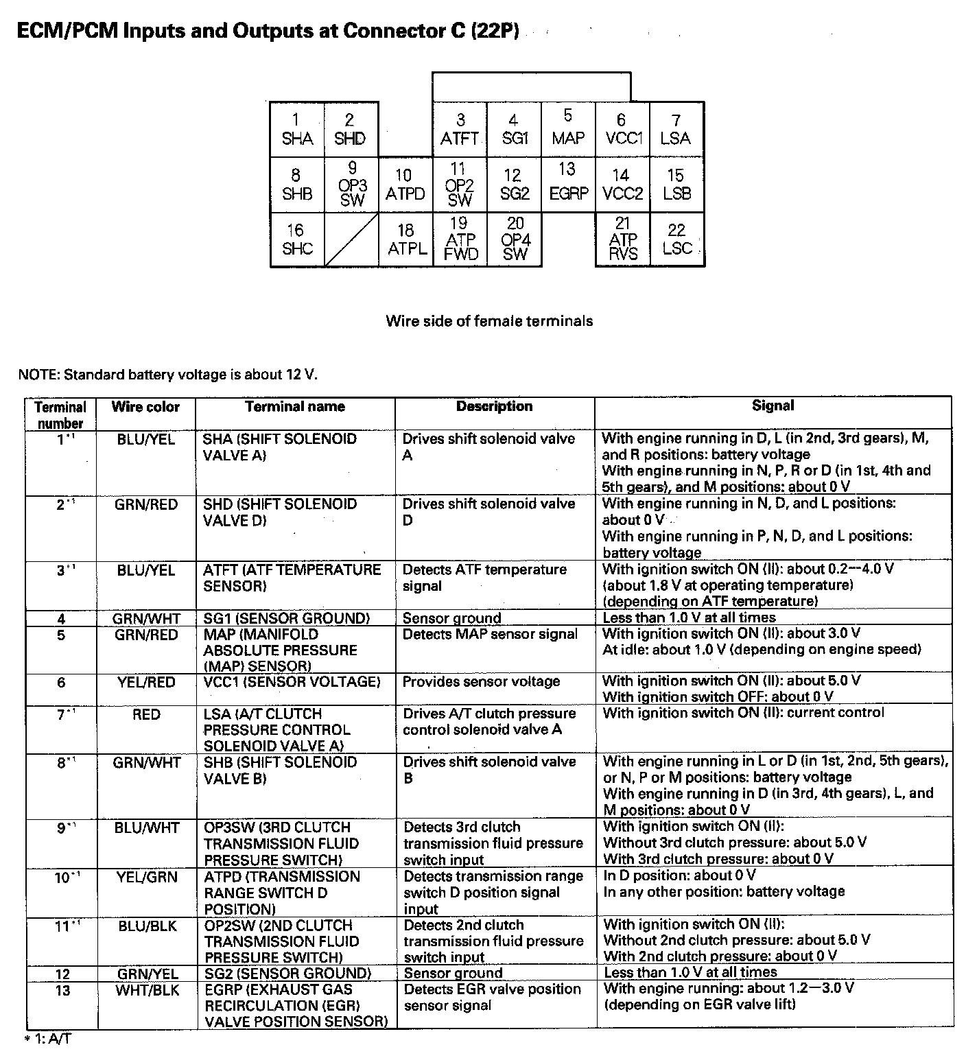 ECM/PCM Inputs And Outputs At Connector C (22P) Part 1: