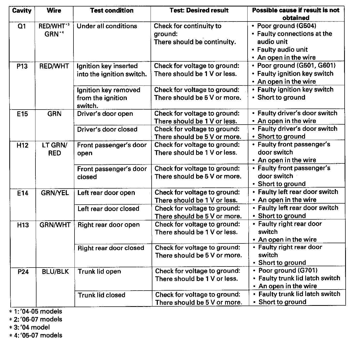 Home >> Acura >> 2007 >> TSX L4-2.4L >> Repair and Diagnosis >> Accessories and Optional Equipment >> Antitheft and Alarm Systems >> Keyless Entry >> Testing and Inspection >> Control Unit Input Test