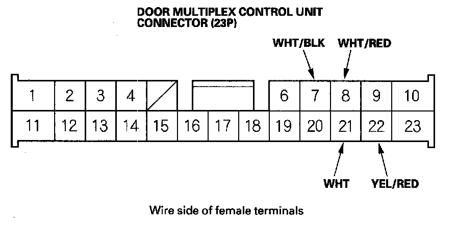 10. Reconnect the connector to the door multiplex control unit, turn the ignition switch ON tests at the connectors.