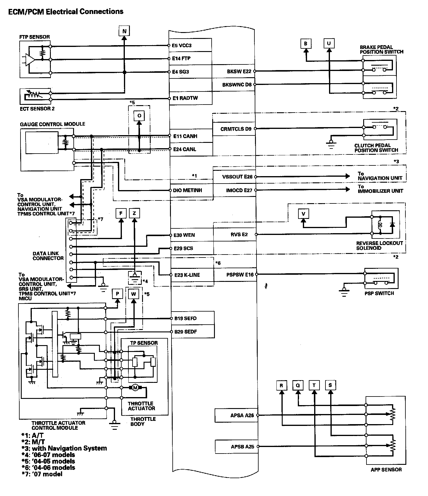 Home >> Acura >> 2007 >> TSX L4-2.4L >> Repair and Diagnosis >> Diagrams >> Electrical Diagrams >> Powertrain Management >> System Diagram >> Control Module Circuit Diagram >> ECM/PCM Electrical Connections