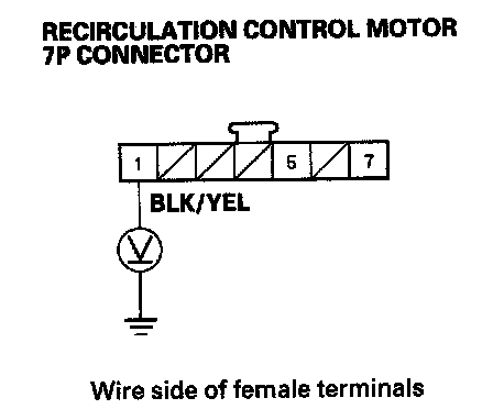 4. Measure the voltage between the No. 1 terminal of the recirculation control motor 7P connector and body ground.