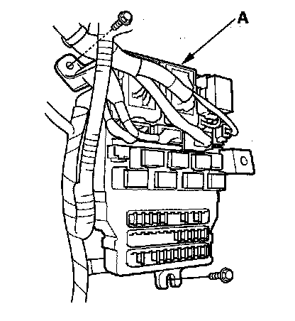 4. Disconnect the connectors from the fuse side of the under-dash fuse/relay box (A).