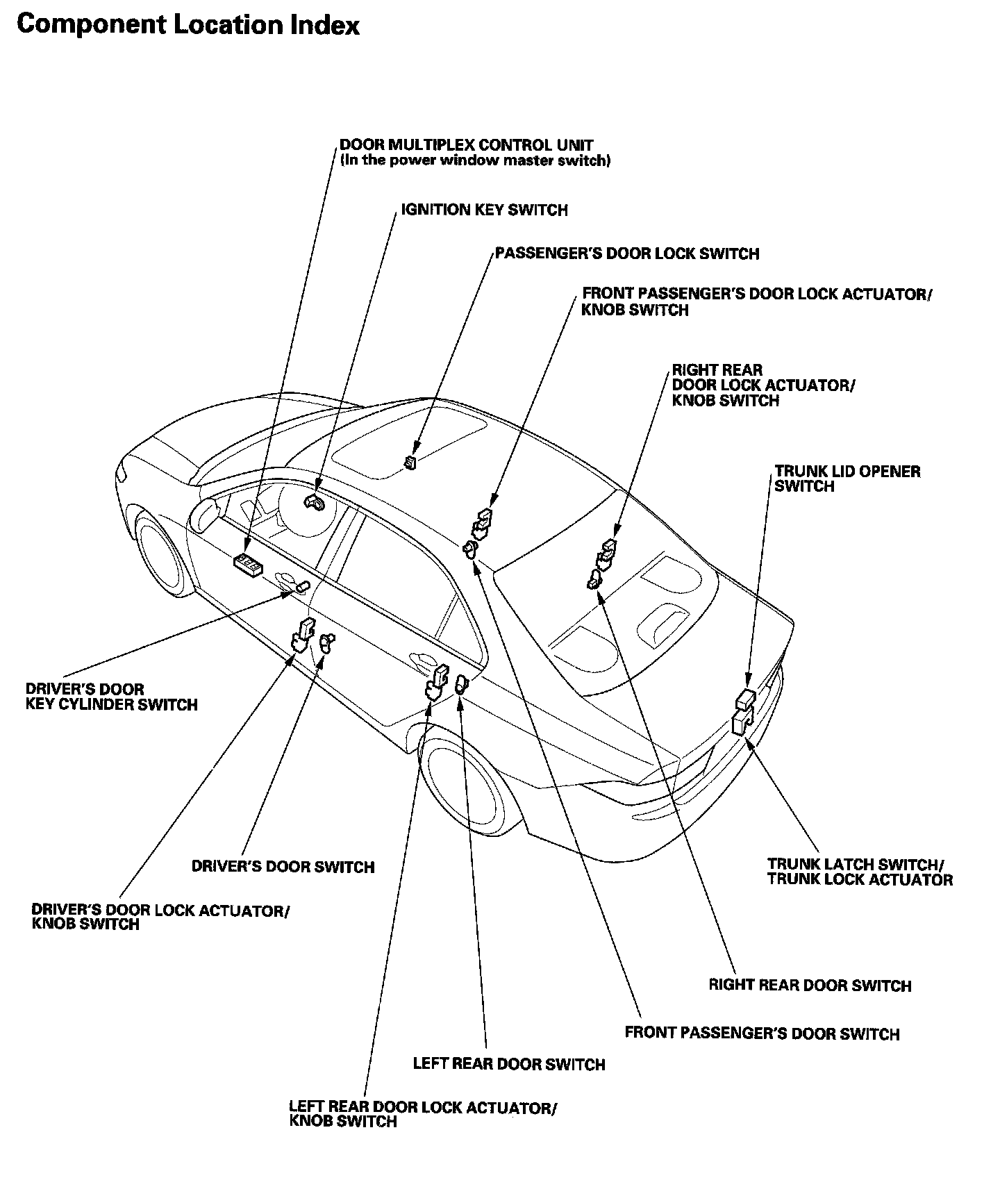Keyless/Power Door Locks/Security System Component Location Index: