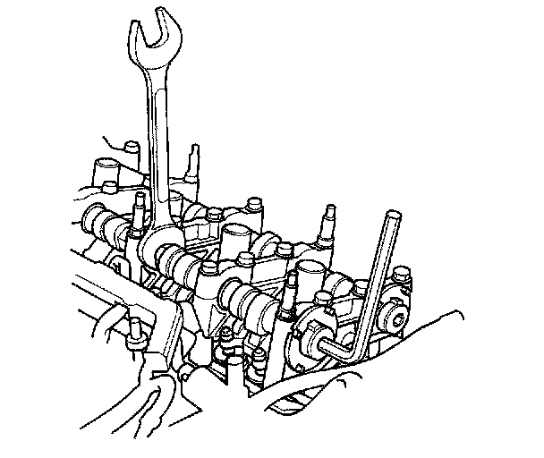2. Hold the camshaft with an open-end wrench, then loosen the bolt.