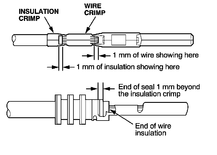 - If you do not have a wire seal, then use the next larger size crimp slot. Position the crimping tool over the insulation crimp section of the terminal, then squeeze the tool with both hands until the stops make contact.