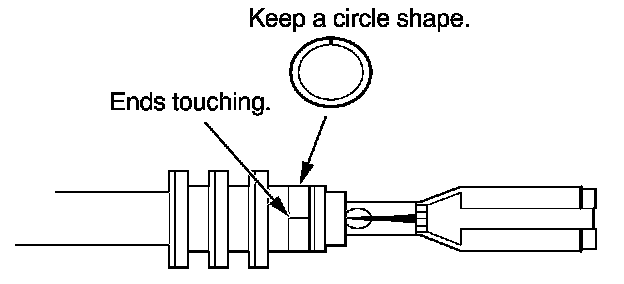3. Strip the insulation off the end of the wire so the wire fits in the new terminal as shown. (If the wire has a wire seal, replace it with a new one from the kit.)