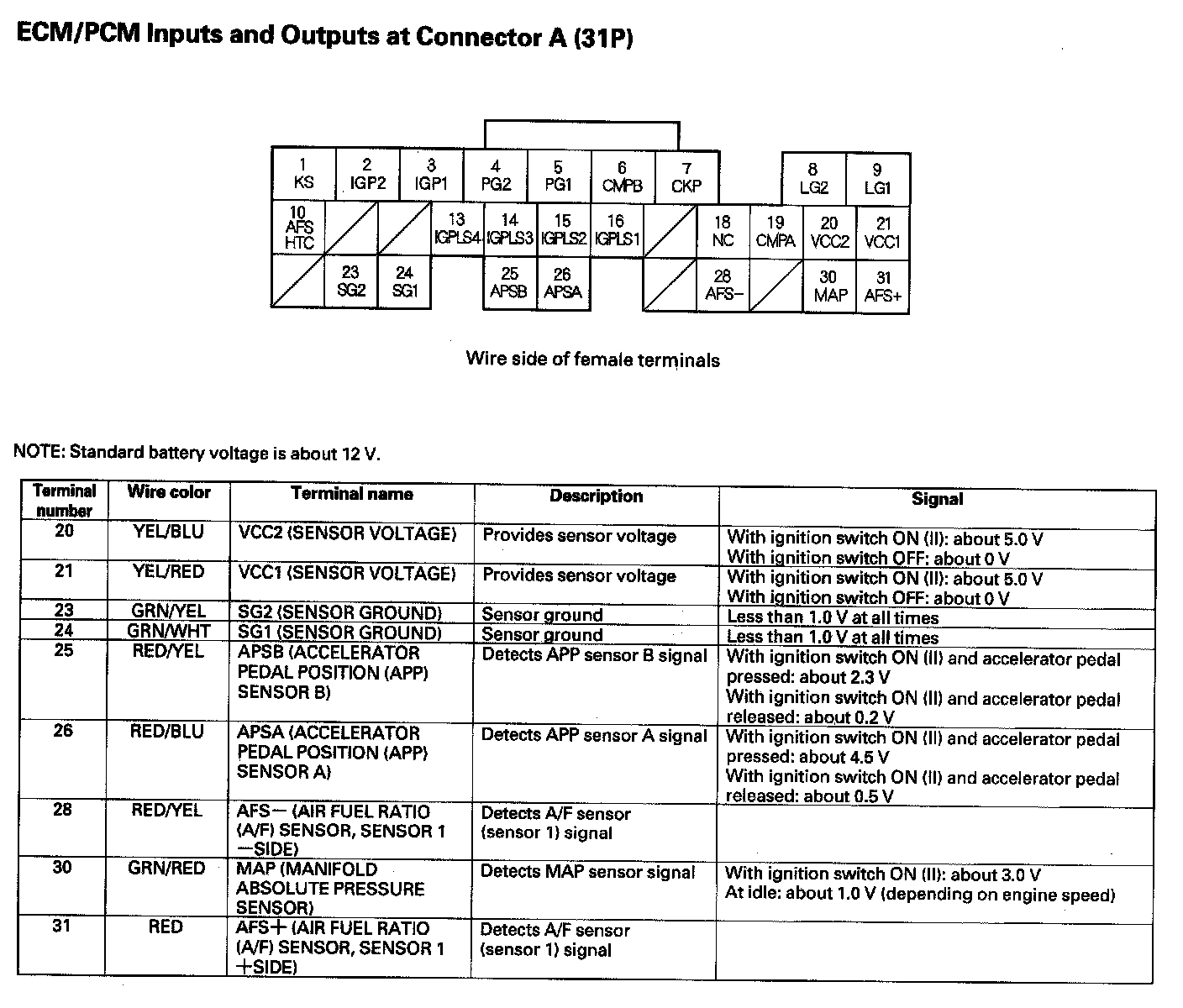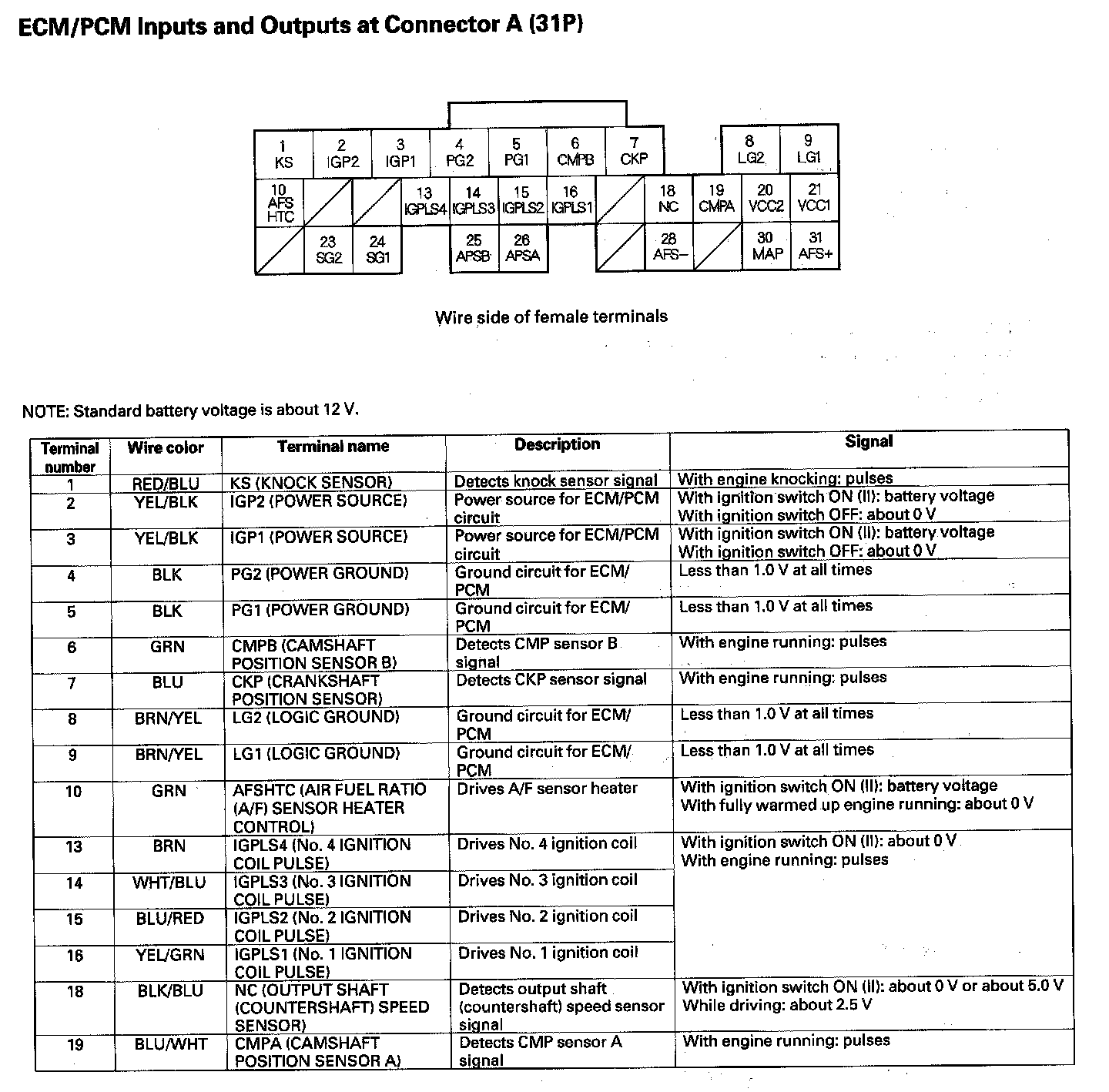 ECM/PCM Inputs And Outputs At Connector A (31P) Part 1: