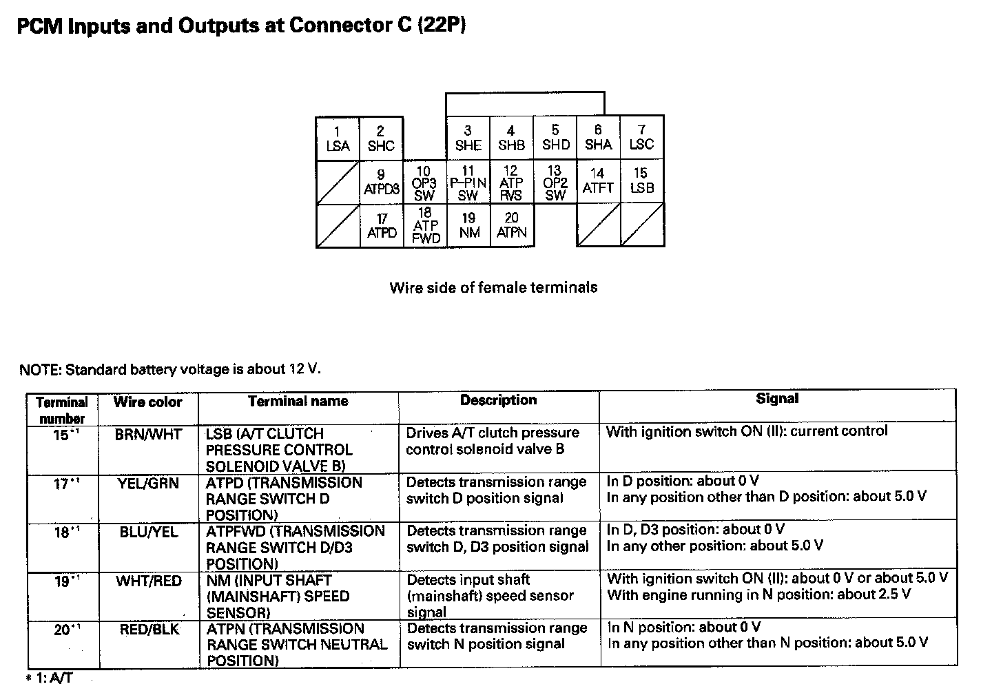 PCM Inputs And Outputs At Connector C (22P) Part 1: