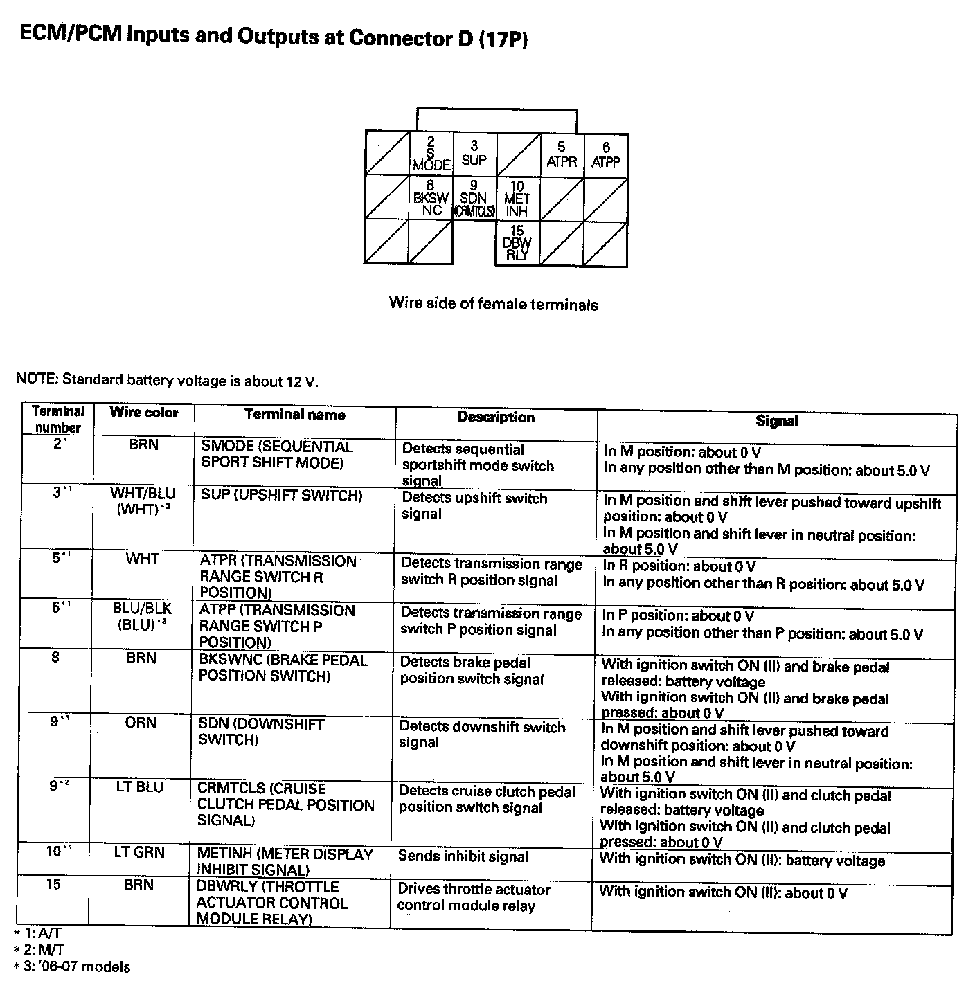 ECM/PCM Inputs And Outputs At Connector D (17P):