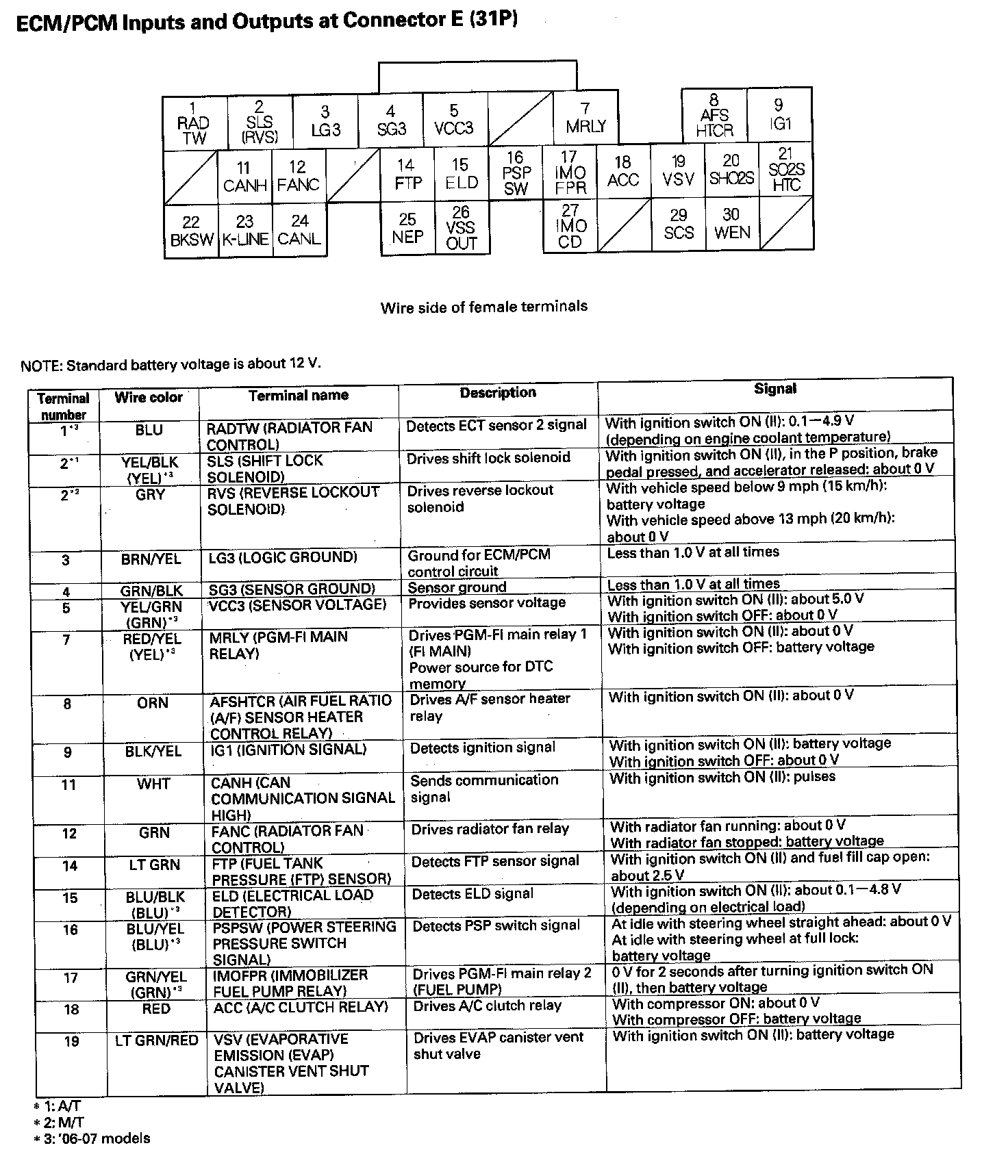 ECM/PCM Inputs And Outputs At Connector E (31P) Part 1: