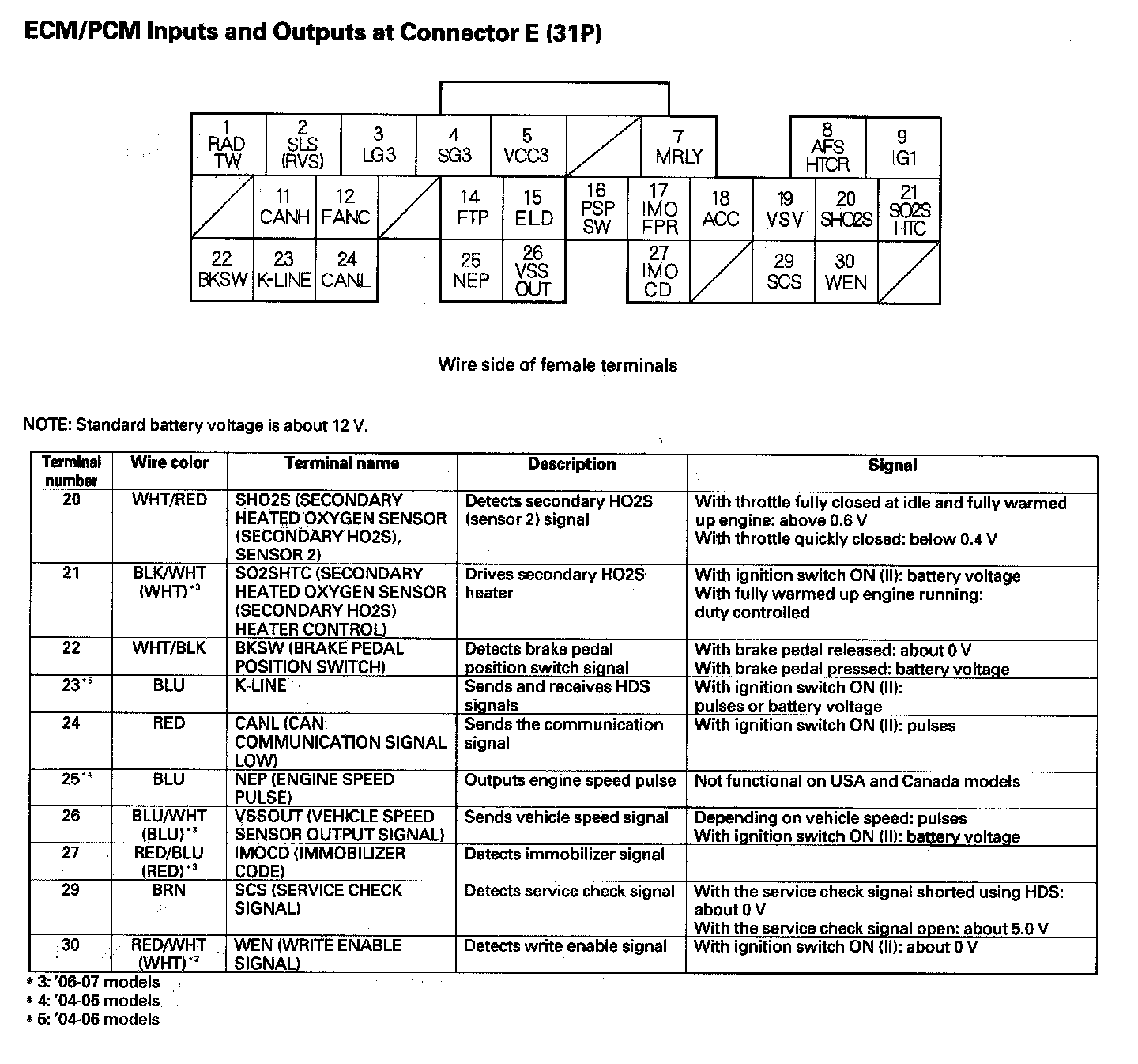 ECM/PCM Inputs And Outputs At Connector E (31P) Part 2: