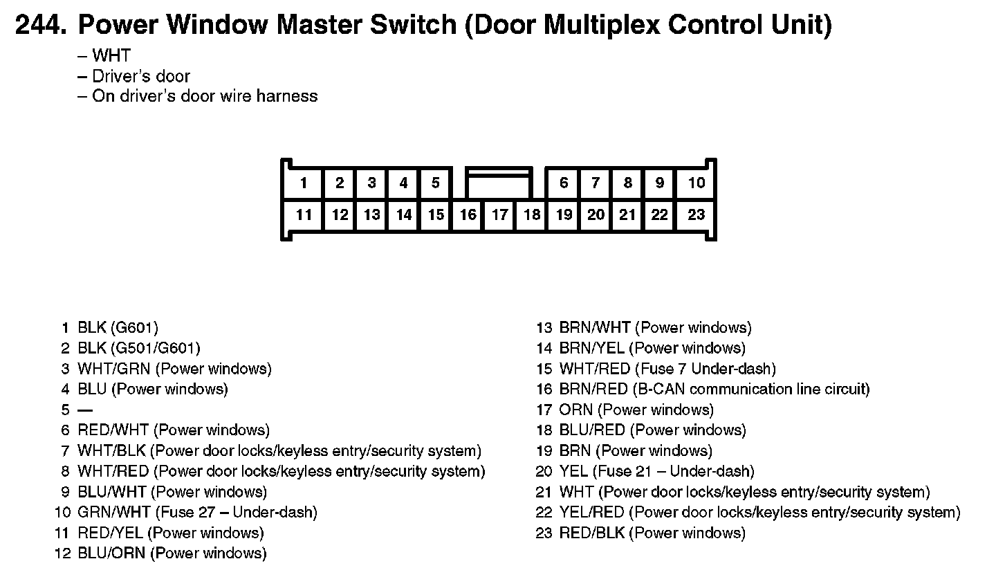244. Power Window Master Switch (Door Multiplex Control Unit):