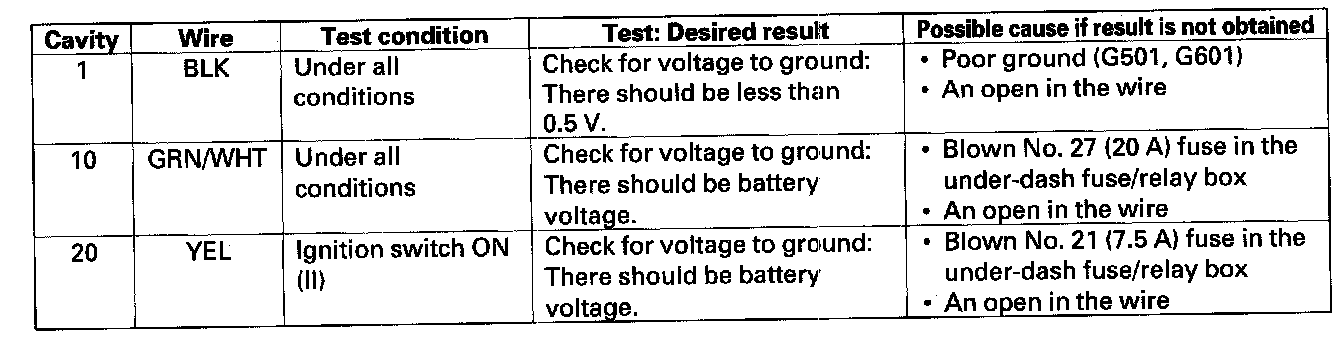 4. Reconnect the connector to the power window master switch, and make these input tests at the connector.