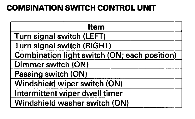 - DTC 4 only (no other DTCs present): Go to the combination switch control unit input test. If all inputs are OK, substitute a known-good wiper/washer switch and then a MICU, one at a time, and then check for DTCs. If a DTC recurs after a substitution, replace that unit.