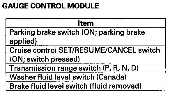 - DTC 5 only (no other DTCs present): Go to the gauge control module input test. If all inputs are OK, substitute a known-good gauge control module and then a MICU, one at a time, and then check for DTCs. If a DTC recurs after a substitution, replace that unit.