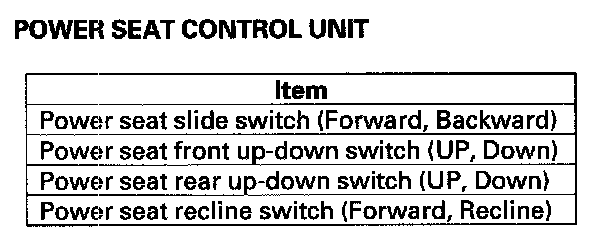 12. In the table above is a list of circuits that can be checked in Test Mode 2. Operate the switch that is most closely related to the problem. If the circuit is OK, the ceiling light will blink once. If the circuit is faulty, there will be no indication.