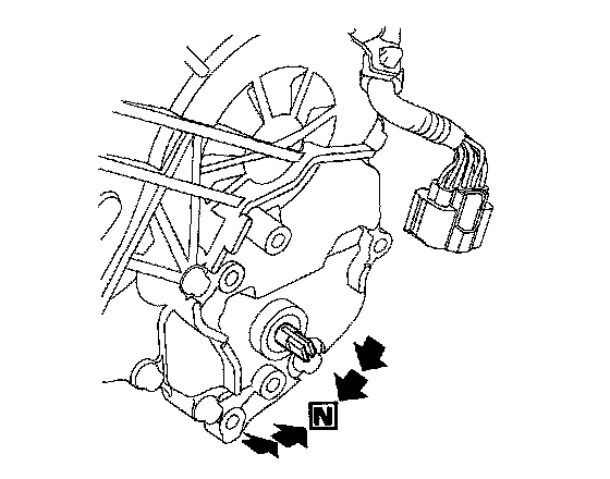 6. Make sure the selector control shaft is in the N position. If necessary, move the shift lever to the N position.