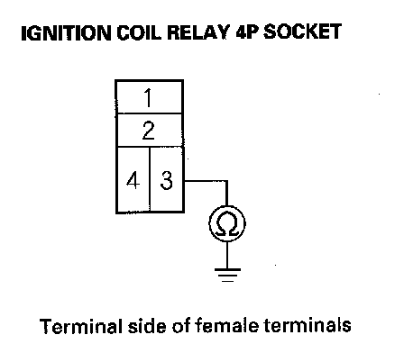 6. Check for continuity between ignition coil relay 4P socket terminal No. 3 and body ground.