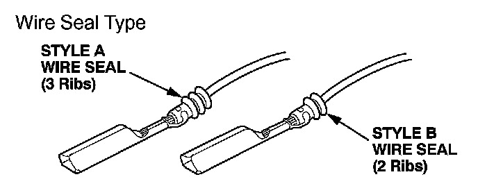 Select the proper size pigtail terminal by matching the replacement terminal part number and the wire size being repaired to the corresponding pigtail terminal part number. Then use the color (size) splice connector listed. In some instances you may also have to match the wire seal style to select the proper pigtail terminal. Pigtail terminals are available through your parts department, in quantities of 10, using normal parts ordering procedures.