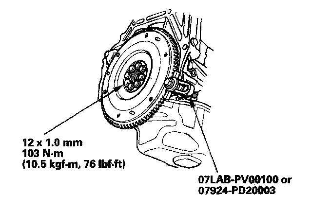Flywheel mounting bolt torque, tighten in a crisscross pattern in several steps