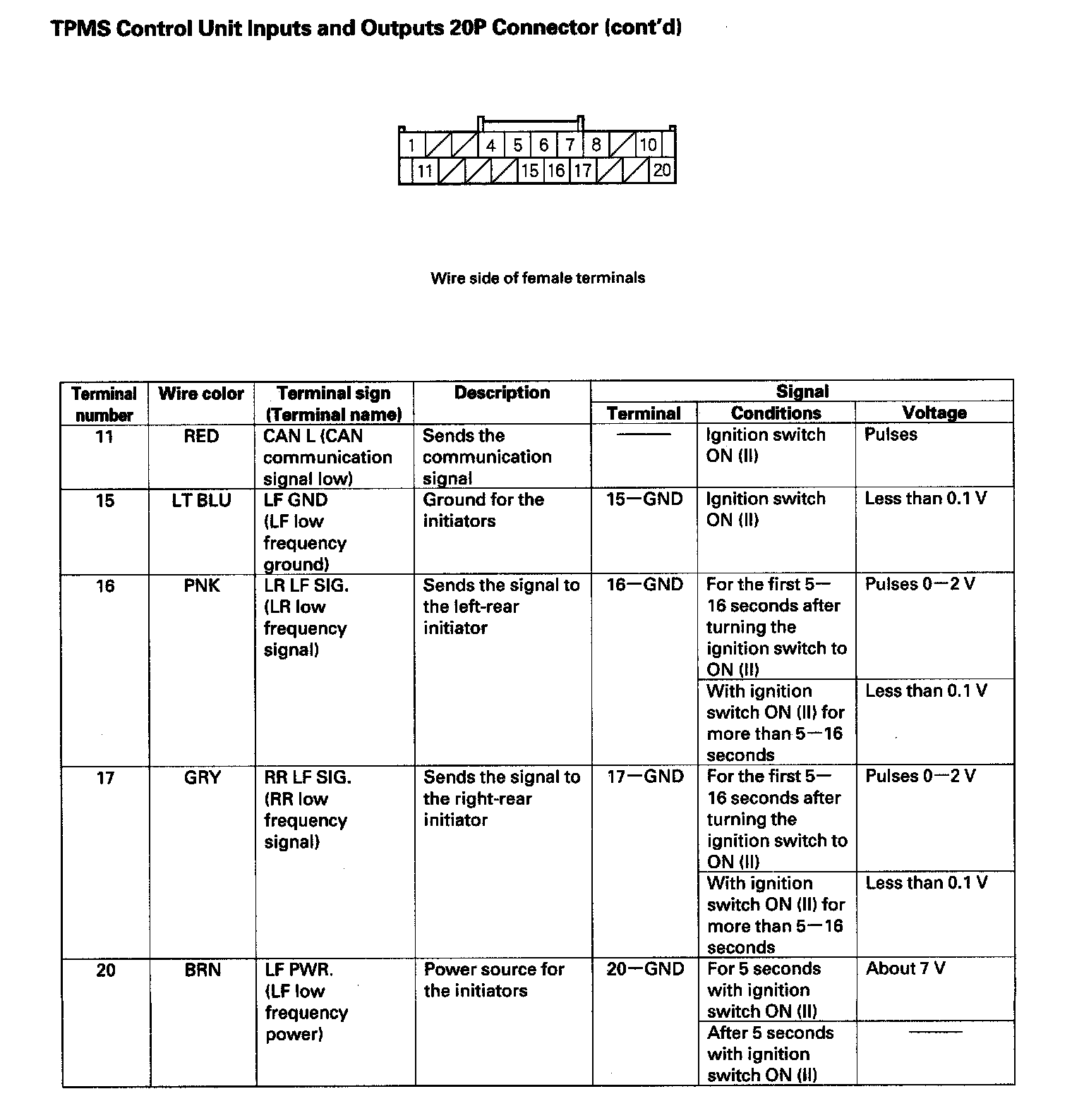 TPMS Control Unit Inputs and Outputs 20P Connector (Part 2):