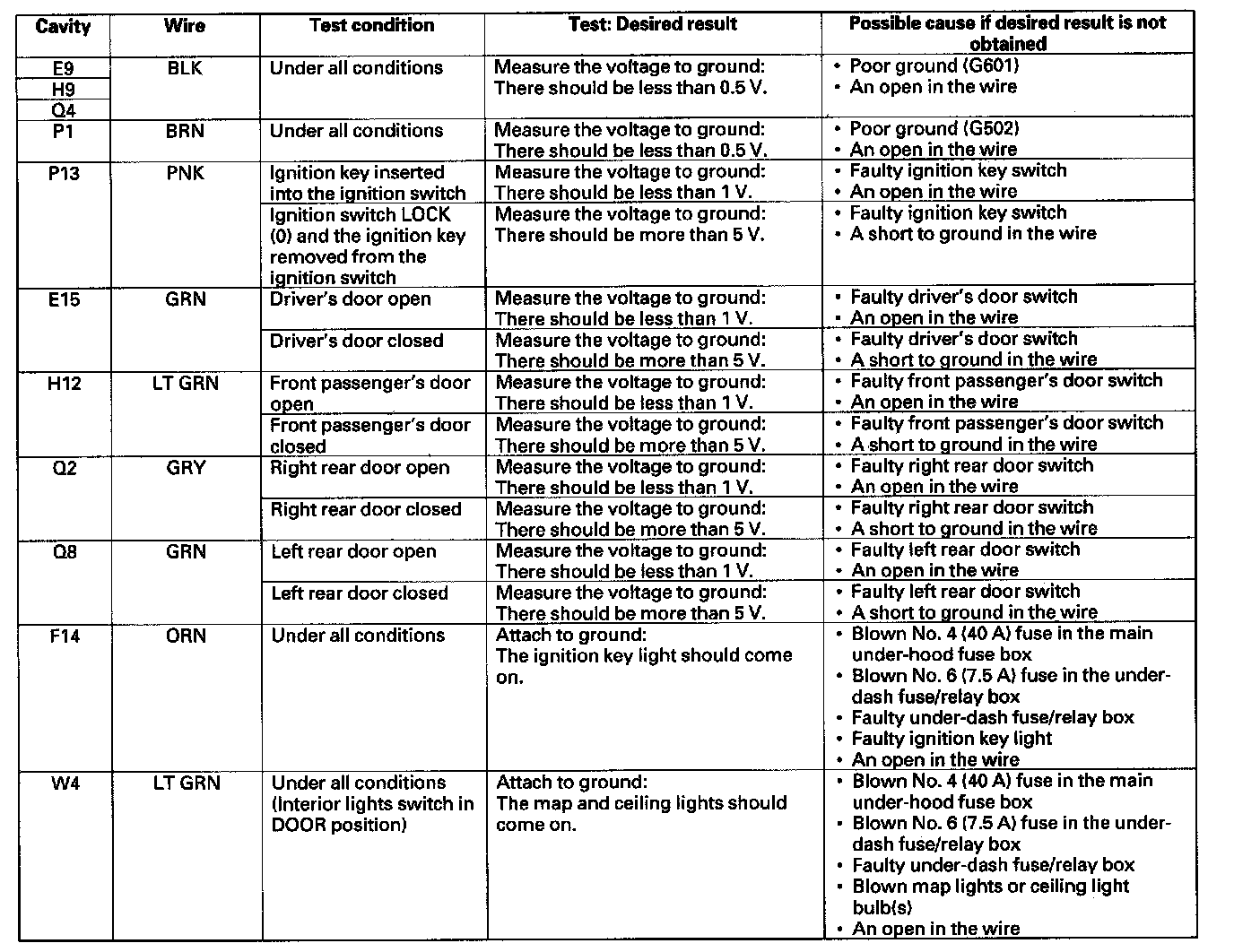 Control Unit Input TestNOTE: Before testing the entry lights control system, troubleshoot the multiplex integrated control unit first, using B-CAN System Diagnosis Test Mode A.