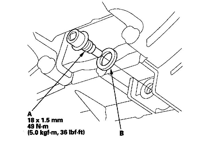 4. Reinstall the drain plug with a new sealing washer (B).