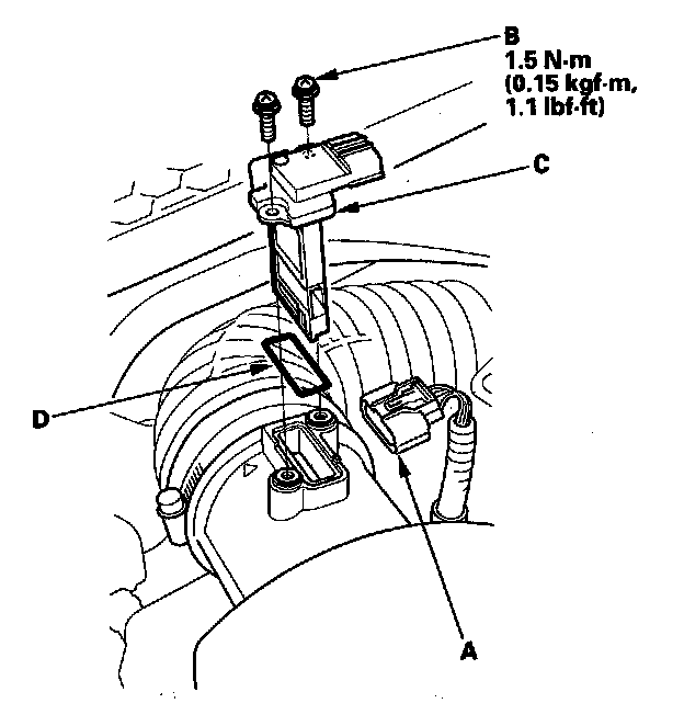 MAF Sensor/IAT Sensor 1 Replacement1. Disconnect the MAF sensor/IAT sensor 1 connector (A).