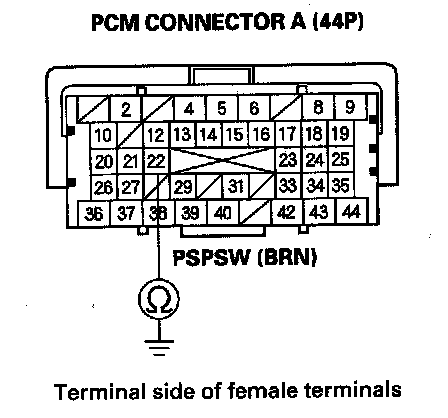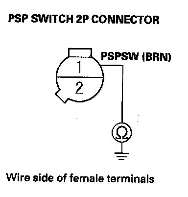 24. Check for continuity between PSP switch 2P connector terminal No. 2 and body ground.