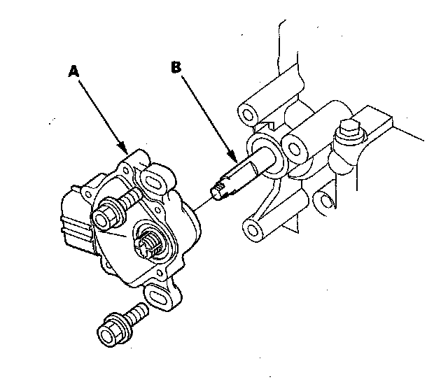 15. Install the transmission range switch (A) gently over the control shaft (B), and install the bolts loosely.