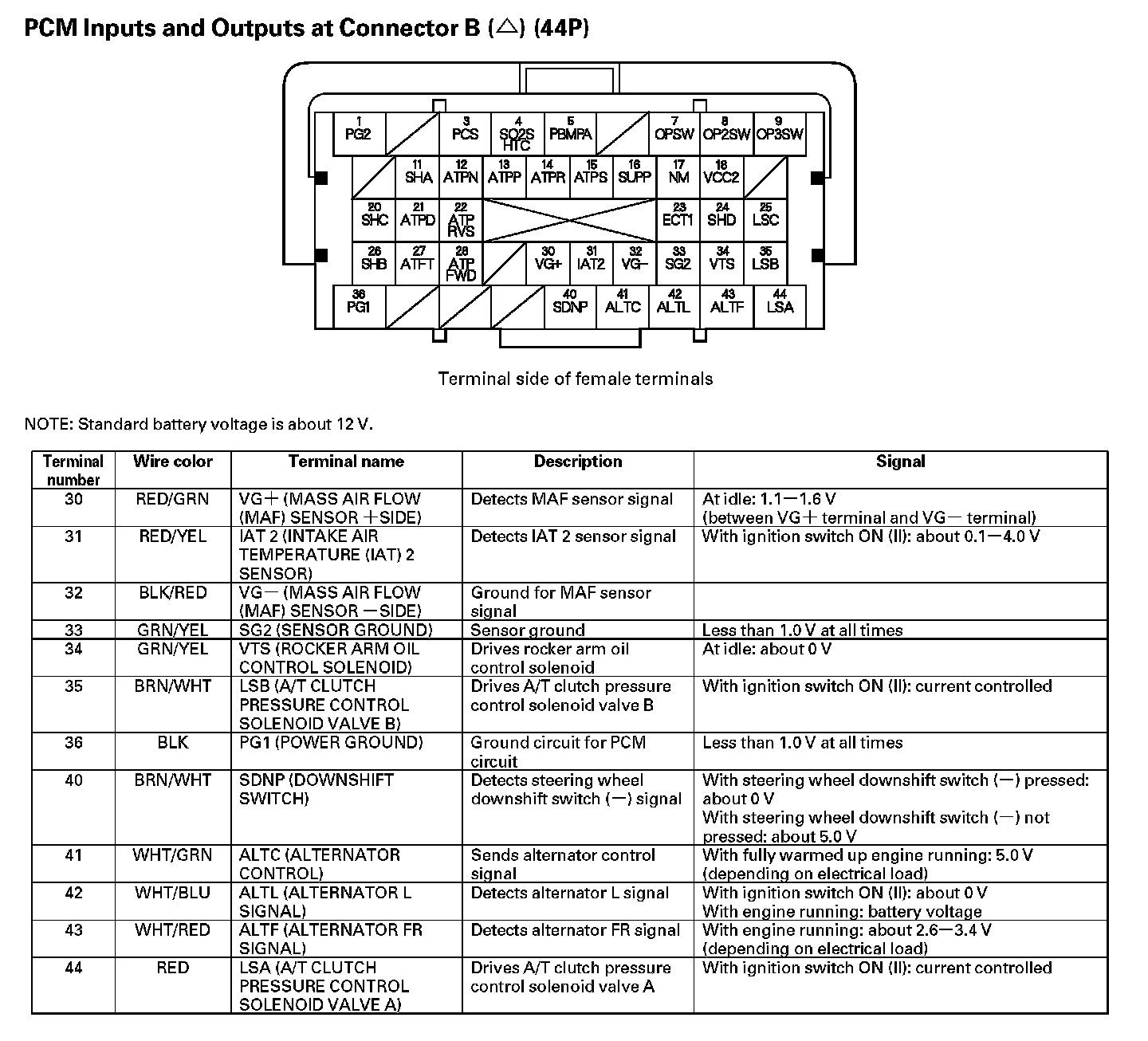 PCM Inputs And Outputs At Connector B (44P) (Part 1):