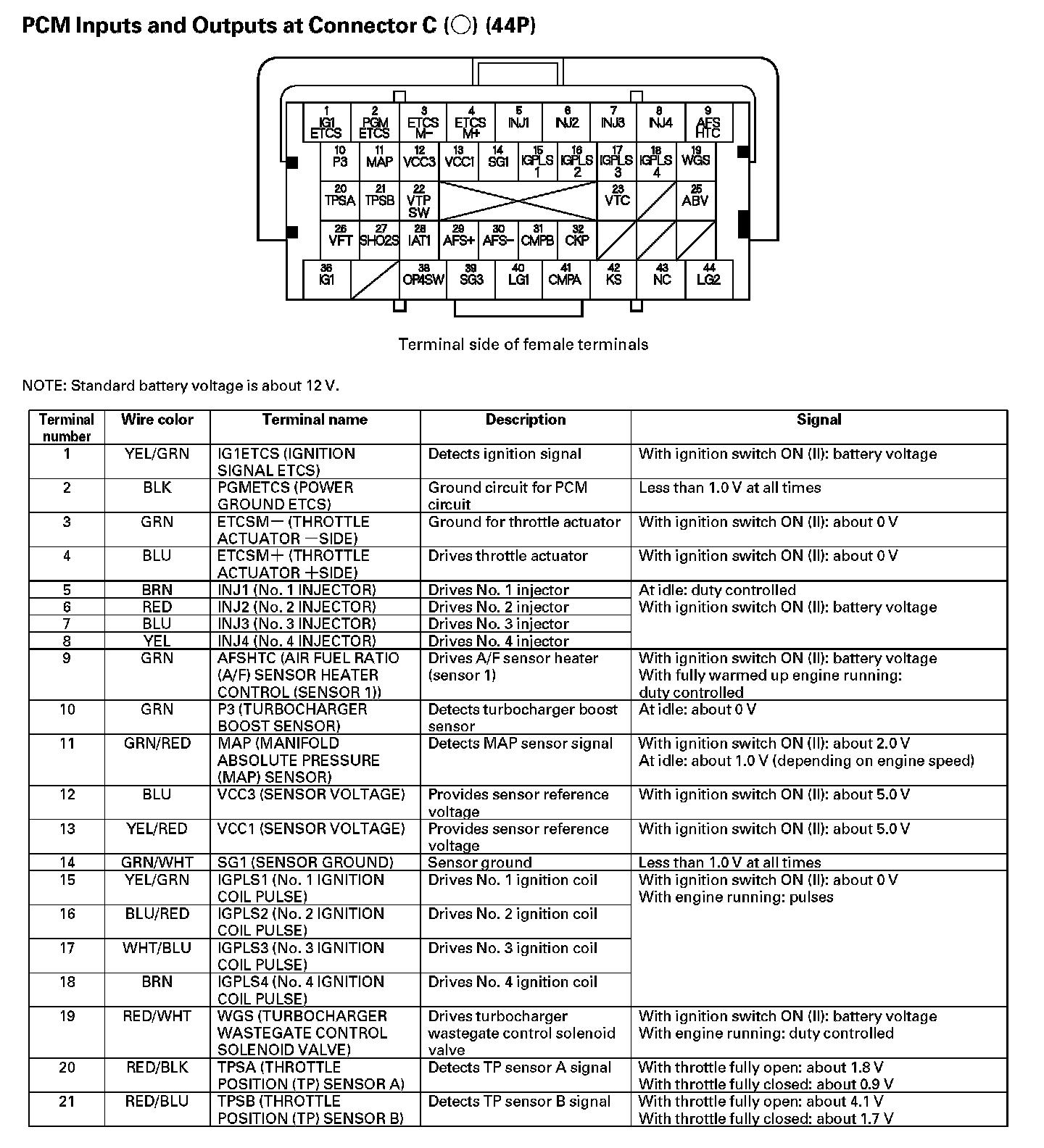 PCM Inputs And Outputs At Connector C (44P) (Part 1):