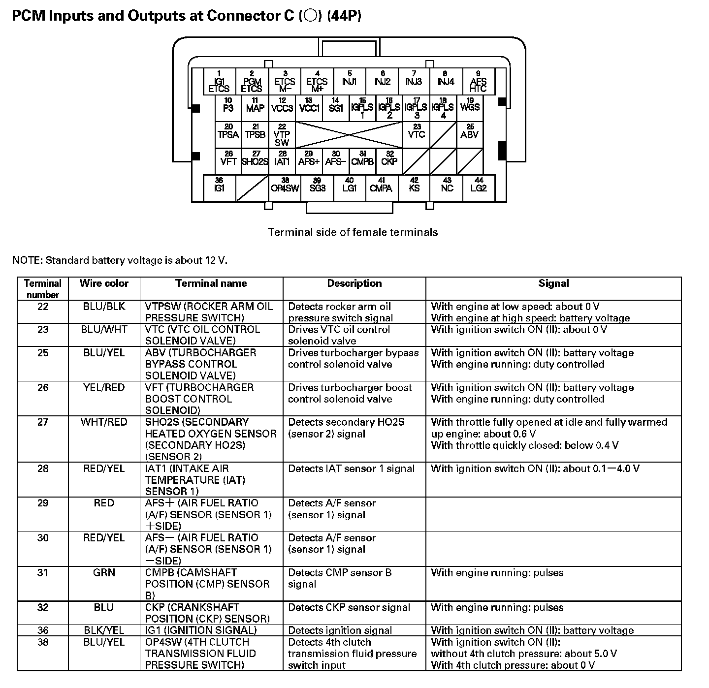 PCM Inputs And Outputs At Connector C (44P) (Part 3):